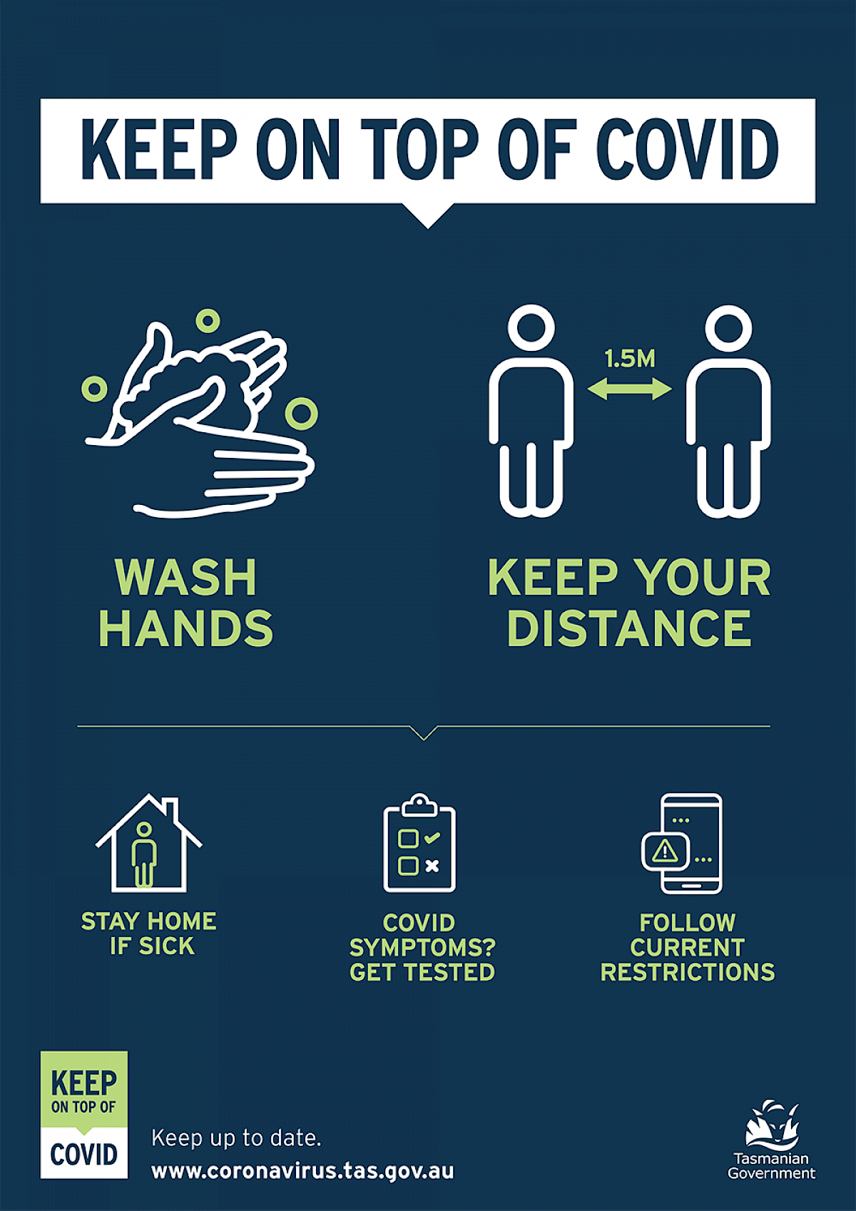 - If you have cold or flu symptoms arrange a COVID-19 test.